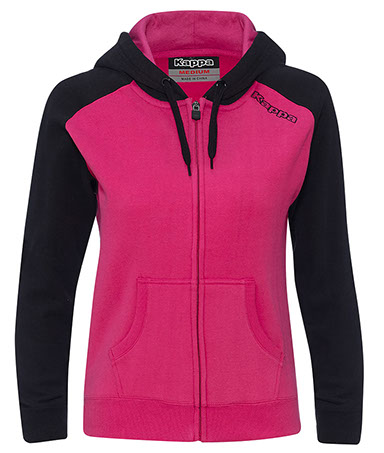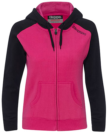 Full-zip hoodie, feminine cut, Kappa logo on front and on back, 80% cotton, 20% polyester brushed fleece.