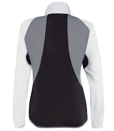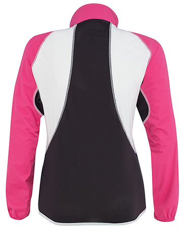 Water-resistant jacket with mesh inserts, feminine cut, Kappa logo on left shoulder and right sleeve, Kombat logo at waist and on left side, 90% polyester shell, 10% elastane shell fabric, 100% polyester.